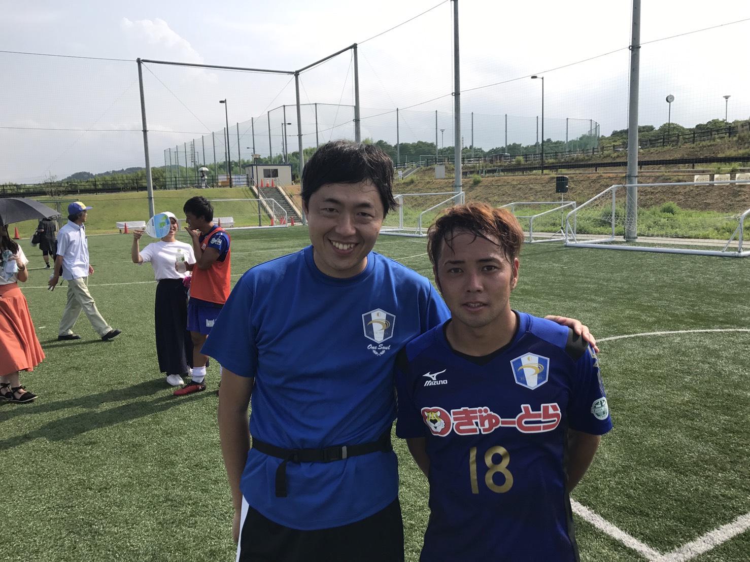 今日の試合後の写真撮影は大野泰祐(おおのたいすけ)選手と撮らせて頂きました。運動量がとても多く、注目している選手です。インテルの長友佑都選手を彷彿とさせる左サイドの職人です。チームのプレースキックも務めています。試合後にカブトムシ販売もされていました。
