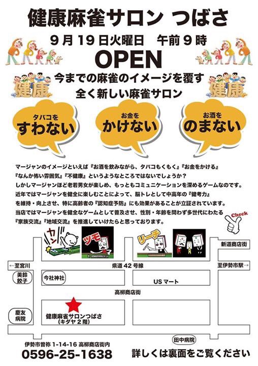 […] さて、そんな中上さん、平成29年9月19日の本日、高柳商店街の一画に「健康麻雀サロンつばさ」をオープンしました!子供服の運営から、麻雀サロン!?さて、そんな中上さんを掘り下 […]
