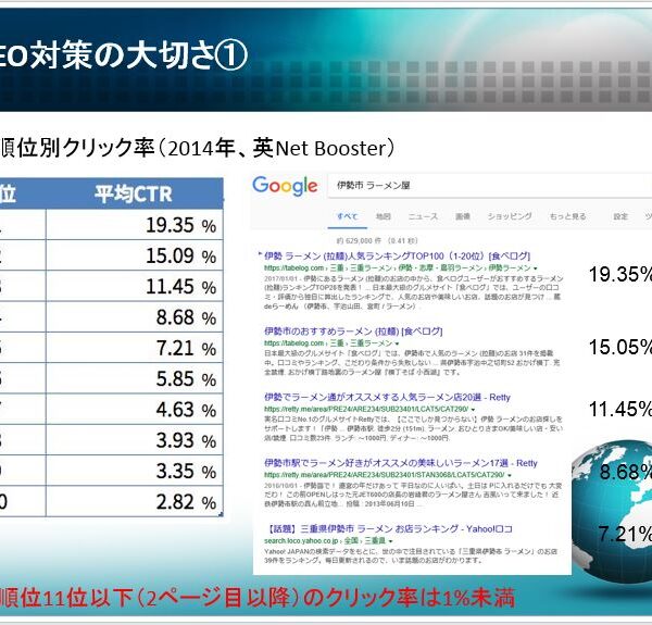 ホームページは作るだけでは、集客効果はあまり期待できません。作りっぱなしでは、まずグーグルやヤフーなどの検索エンジンの上位に表示されることはないからです。もちろん、検索したい店舗名、会社名や商品名を知っている場合であれば、その固有名詞で検索しますので、上位に表示されます。但し、それらの固有名詞を知らない人であれば、SEO対策無しでは、上位表示は難しいでしょう。
