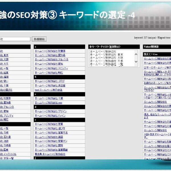 ホームページ制作会社を選ぶ際は、是非ともお客様のビジネスの目的に合わせてお選びください。デザインを重視した格好良いホームページを作成したいのか、それともホームページにより集客力を強化したいのか、良く考えて選ぶことをお勧めします。既に店舗名や商品が対象顧客に知れ渡っていて、ホームページによって集客する必要性が無く、ホームページを持つことによる信頼性の向上や電話番号や住所などの連絡先を掲載する為だけにホームページを持ちたいのであれば、デザイン性などを重視するのも良いかと思います。一方、まだ店舗名や商品は知れ渡っておらず、これからホームページで集客を図りたい場合は、SEOに強い集客力があるホームページを作成する制作会社を選ぶべきだと考えます。当社は後者になります。
